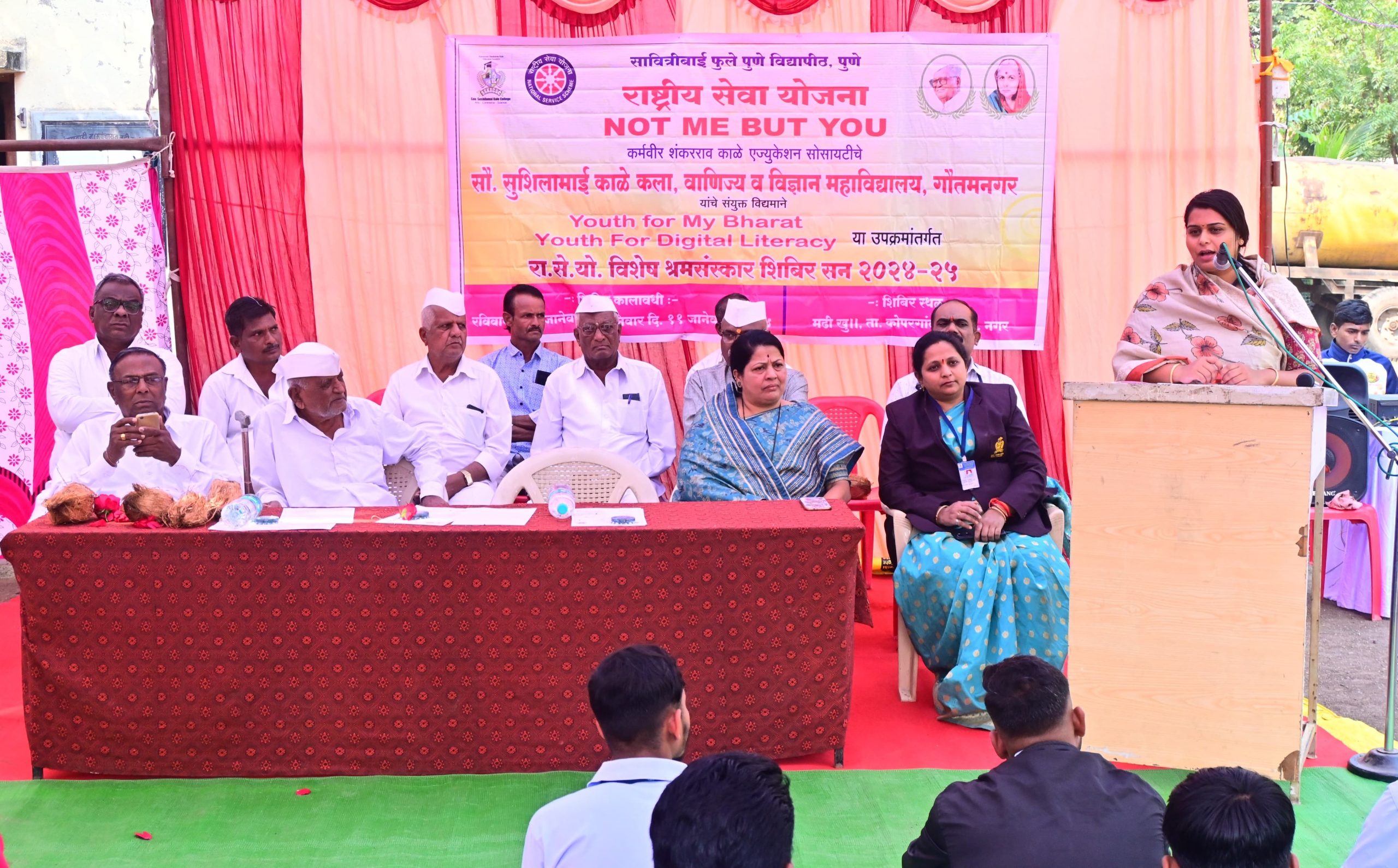 सावित्रीबाई फुले,पुणे विद्यापीठ,राष्ट्रीय सेवा योजना व कर्मवीर शंकरराव काळे एज्युकेशन सोसायटीच्या सौ. सुशीलामाई काळे कला,वाणिज्य व विज्ञान महाविद्यालयाच्या संयुक्त विद्यमाने कोपरगाव तालुक्यातील मढी खु.येथे राष्ट्रीय सेवा योजना विशेष श्रमसंस्कार शिबिराचे उदघाटन सौ.चैतालीताई काळे यांच्या हस्ते करण्यात आले.याप्रसंगी राष्ट्रीय सेवा योजनेच्या स्वयंसेवकांना मार्गदर्शन करतांना त्या बोलत होत्या.त्या पुढे म्हणाल्या की, राष्ट्रीय सेवा योजना हिवाळी शिबीर विद्यार्थ्यांच्या जीवनात एक महत्त्वपूर्ण भूमिका बजावते. विद्यार्थ्यांना कर्तव्य, सहकार्य, आणि जनसेवा याचे महत्त्व शिकवून त्यांचा व्यक्तिमत्व विकास होवून विद्यार्थ्यांना समाजात चांगला नागरिक बनवण्याचा मार्ग मिळतो. विद्यार्थ्यांना पुढील जीवनासाठी योग्य दिशा मिळते. त्यामुळे प्रत्येक विद्यार्थ्यांने राष्ट्रीय सेवा योजनेच्या शिबिरांमध्ये सहभागी होणे आवश्यक आहे. आज सोशल मीडिया प्रत्येकाची सगळ्यात मोठी गरज झाली असली तरी विद्यार्थ्यांनी मोबाईलचा मर्यादित उपयोग करून सोशल मीडियाचा वापर कमी करावा. राष्ट्रीय सेवा योजनेच्या स्वयंसेवकाला राष्ट्रासाठी काही तरी करायचे असते म्हणुन आपले व्यक्तिमत्व असे घडवा की, सगळ्यांमध्ये राहून स्वत:चे वेगळे व्यक्तिमत्व निर्माण करता आले पाहिजे यासाठी या शिबिराची शिदोरी पुढील आयुष्यात सोबत ठेवा असा मौलिक सल्ला त्यांनी यावेळी दिला.
