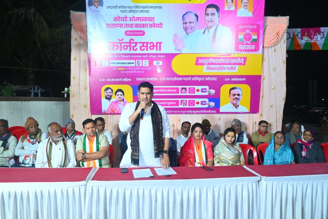कोपरगाव,दि.१४:- कोपरगाव शहराच्या सर्वांगीण आणि शाश्वत विकासासाठी नगरपालिकेच्या माध्यमातून मुलभूत सर्व विकासकामे करणार आहे. होवू घातलेल्या कोपरगाव नगरपरिषदेच्या निवडणुकीत राष्ट्रवादी कॉंग्रेस पक्षाचा नगराध्यक्ष आणि सर्व नगरसेवक निवडून द्या तुम्हाला अपेक्षित असलेला कोपरगाव शहराचा विकास करून शहराचा चेहरा मोहरा बदलवून दाखवतो अशी साद आ.आशुतोष काळे यांनी कोपरगावकरांना घातली आहे. कोपरगाव नगरपरिषद निवडणुकीच्या पार्श्वभूमीवर प्रभाग क्रमांक १२ व १३ मध्ये राष्ट्रवादी काँग्रेसचे नगराध्यक्ष पदाचे उमेदवार ओमप्रकाश (काका) कोयटे तसेच नगरसेवक पदाच्या उमेदवारांच्या प्रचारार्थ आयोजित कॉर्नर सभेत ते बोलत होते. यावेळी नगराध्यक्ष पदाचे उमेदवार काकासाहेब कोयटे, तसेच नगरसेवकपदाचे उमेदवार, राष्ट्रवादी कॉंग्रेस पक्षाचे पदाधिकारी, कार्यकर्ते व नागरीक मोठ्या संख्येने उपस्थित होते.