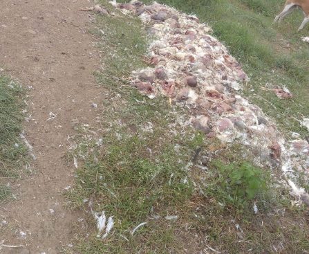 सिन्नर,दि.३-वावी ते घोटेवाडी रस्त्यावर समृद्धी पुलाजवळ आज पहाटेच्या सुमारास शेकडो मृत कोंबड्या रस्त्याच्याकडेला फेकून देण्यात आल्याचे नागरिकांच्या निदर्शनास आले असून अशाच प्रकार दोन दिवसांपूर्वी घडलेला असताना परत तोच प्रकार घडल्याने संताप व्यक्त करण्यात येत असून त्या दुर्गंधीमुळे परिसरातील नागरिकांचे आरोग्य धोक्यात आले आहे.