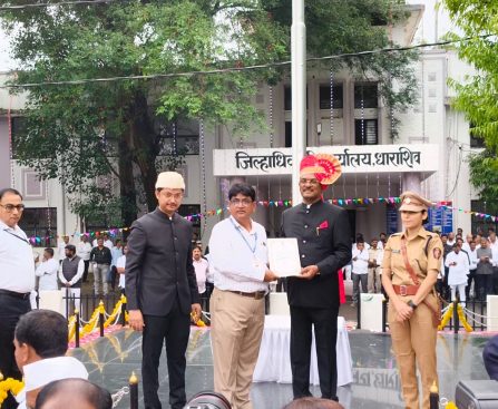 जगदीशचंद्र जोशी,विशेष प्रतिनिधी धाराशिव,दि.१७-कार्यालयीन सुधारणा विशेष मोहिमे अंतर्गत सहाय्यक आयुक्त (मत्स्य व्यवसाय)जलील अहमद पटेल यांचा पालकमंत्री प्रतापराव सरनाईक यांच्या हस्ते गौरव करण्यात आला. राज्य शासनाच्या अंतर्गत शंभर दिवसांची कार्यालयीन सुधारणा विशेष मोहीम अंतर्गत सहाय्यक आयुक्त मत्स्यव्यवसाय धाराशिव कार्यालय हे सर्वोत्कृष्ट कामगिरी बजावलेली राज्यातील जिल्हास्तरीय शासकीय कार्यालयांमध्ये प्रथम क्रमांक मिळाला आहे.याबद्दल सहाय्यक आयुक्त जलील […]