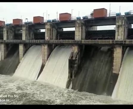 जगदीशचंद्र जोशी,प्रतिनिधी धाराशिव,दि.१७-बीड, लातूर आणि धाराशिव जिल्ह्याच्या सीमेवर असलेल्या मांजरा धरणातील पाणलोट क्षेत्रात सातत्याने पाऊस होत असल्याने पाण्याची आवक मोठ्या प्रमाणात वाढत आहे.त्यामुळे धरण पाणी पातळी नियंत्रित करण्याचे दृष्टीने (शनिवारी ता.१६) दुपारी सव्वा दोन वाजता मांजरा प्रकल्पाचे चार वक्रद्वारे ०.२५ मीटर उंचीने उघडून मांजरा नदीपात्रात ३४९४.२८ क्यूसेक्स (९८.९६क्यूमेक्स ) इतका पाण्याचा विसर्ग सोडण्यात आला आहे. […]