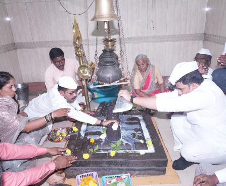 कोपरगाव, दि.६ – कोपरगाव विधानसभा मतदारसंघातून २०१९ ला निवडून आलेले आमदार आशुतोष काळे पुन्हा एकदा आमदार व्हावेत यासाठी पायात चप्पल न घालन्याचा त्यांच्या कार्यकर्त्याने केलेला संकल्प आ.आशुतोष काळे यांच्या हस्ते सोमवार (दि.०५) रोजी नवसाला पावणारे जागृत देवस्थान श्री निझर्णेश्वराला रुद्राभिषेक करुन व ५१ जोडप्यांच्या हस्ते सत्यनारायण पूजा करुन पूर्ण केला. यानिमित्ताने स्वतःच्या जीवाची पर्वा न […]